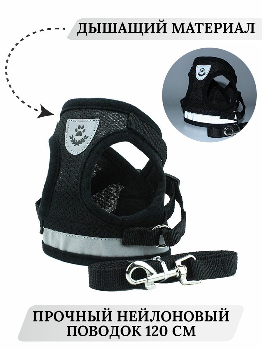Шлейка для собак мелких пород и кошек с поводком Mirestra, черная, размер L информация: