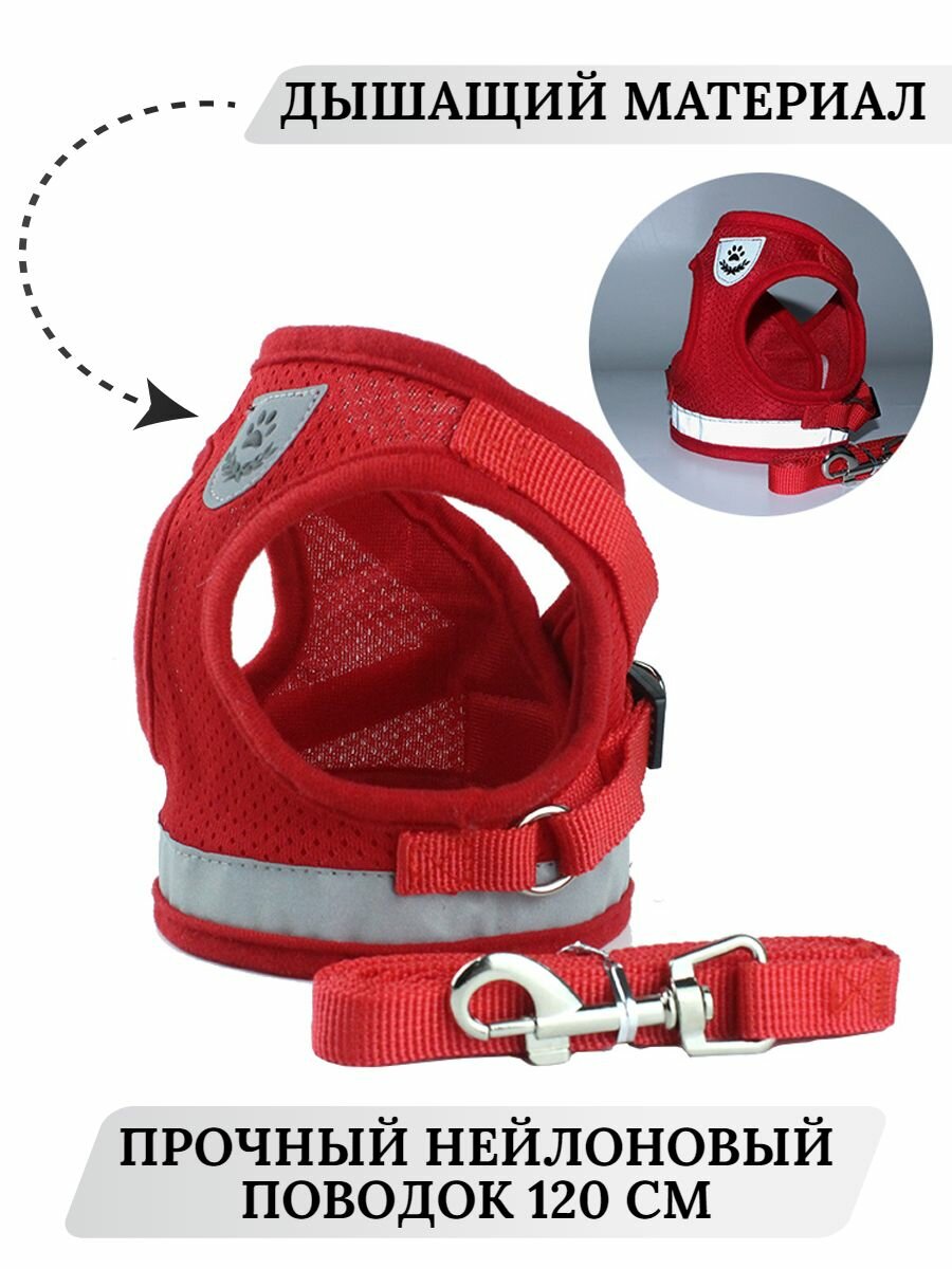 Шлейка для собак мелких пород и кошек с поводком Mirestra, красная, размер XL информация: