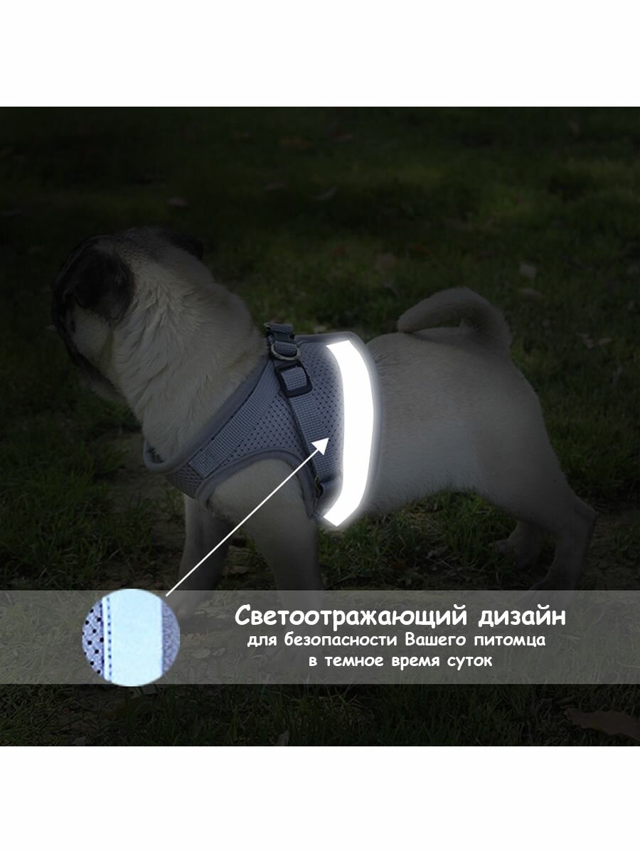 Шлейка для собак мелких пород и кошек с поводком Mirestra, серая, размер XL 430 ₽