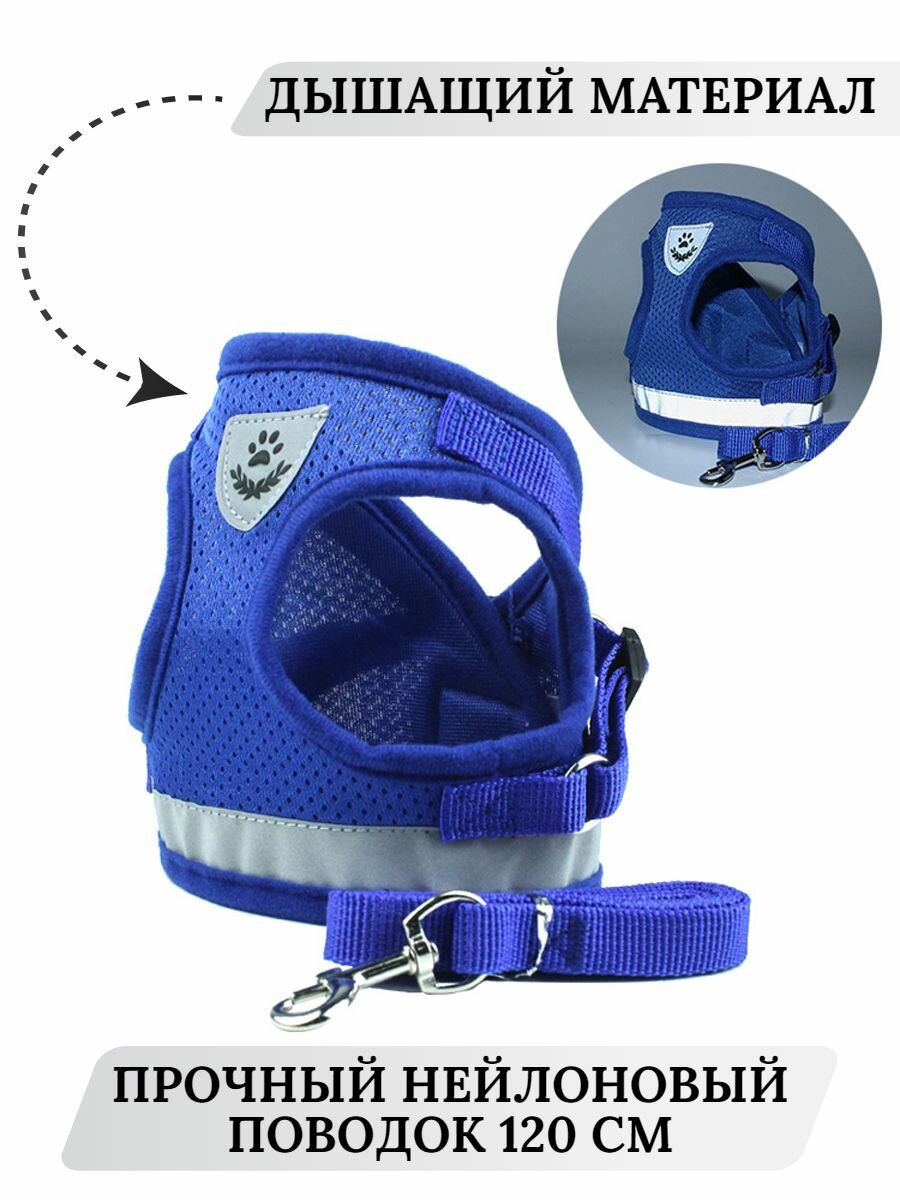 Шлейка для собак мелких пород и кошек с поводком Mirestra, синяя, размер XS информация: