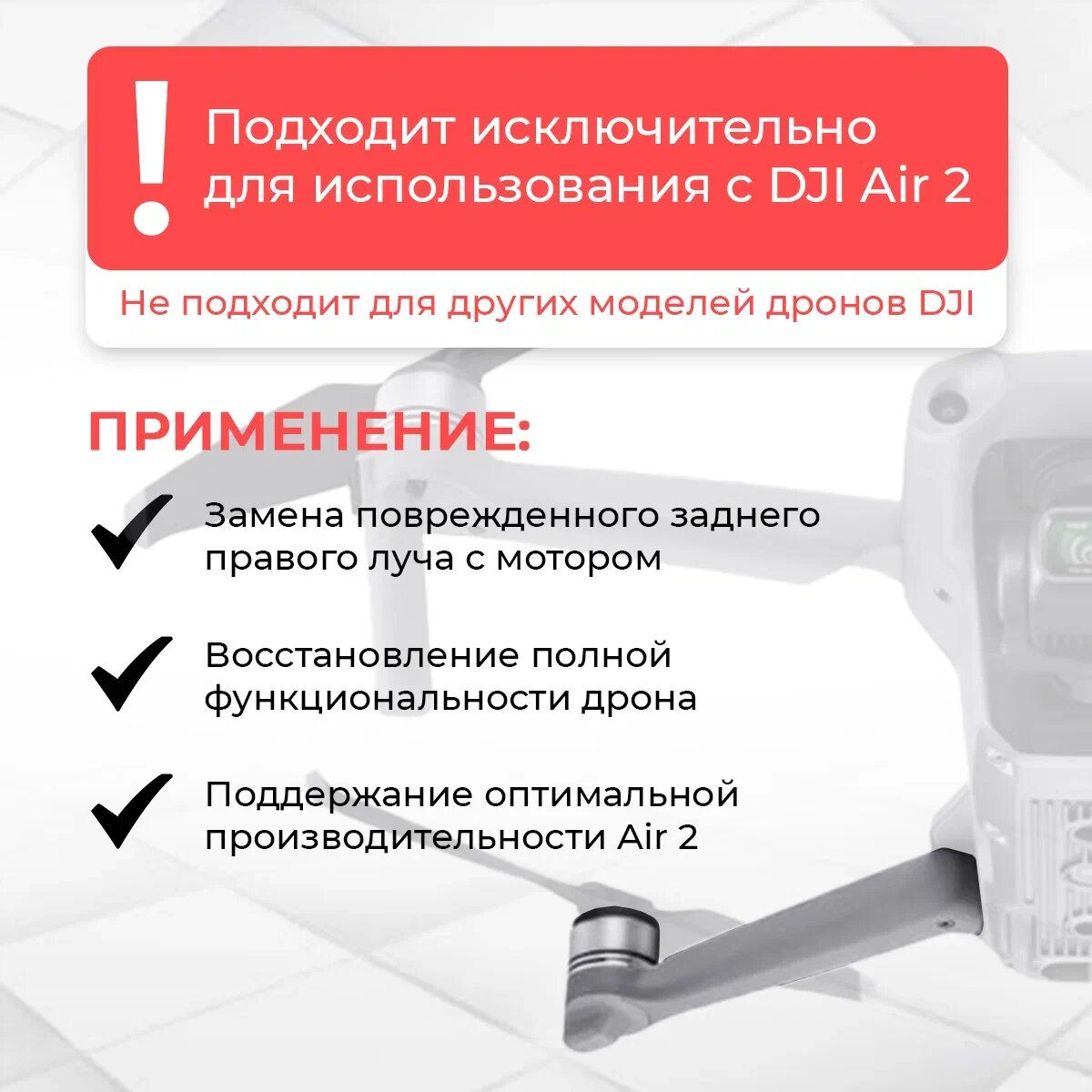 Задний правый луч для квадрокоптеров DJI Air 2 с мотором информация: