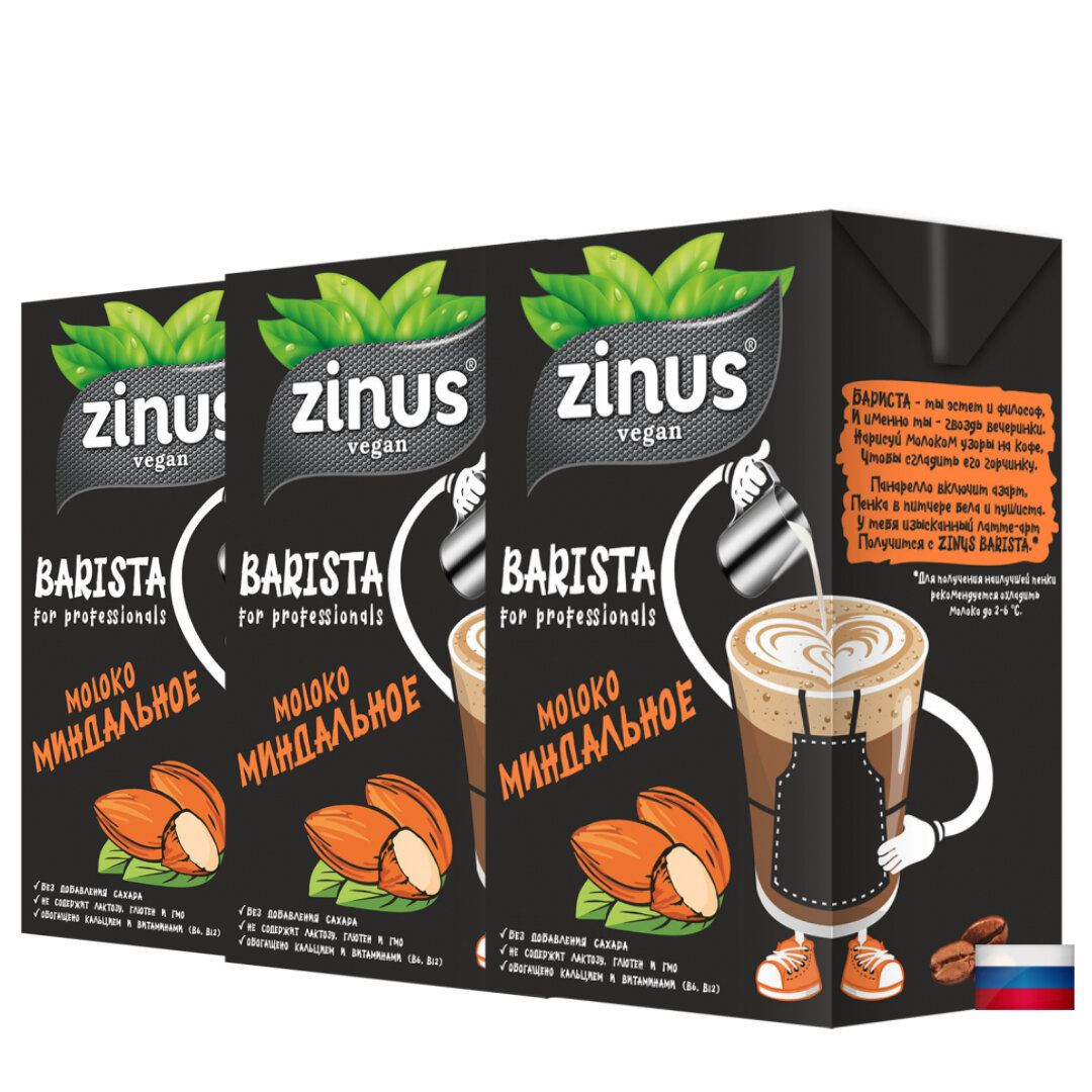 10 цен на Молоко миндальное, растительное, ZINUS Barista, 3 штуки по 1 литру
