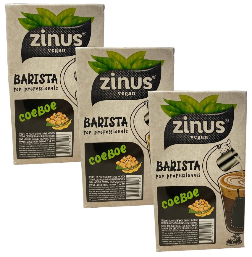 10 цен на Молоко соевое "ZINUS Barista" , в наборе 3 упаковки по 1 литру