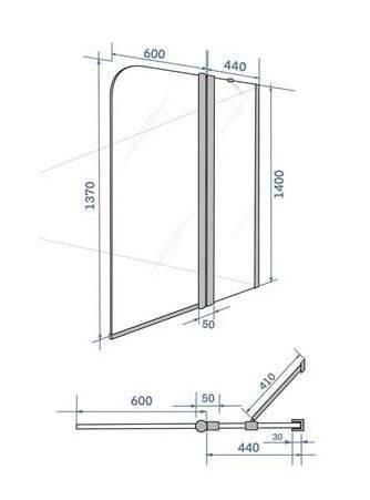 Шторка на ванну SEAN-10/2 прозрачное стекло 6 мм, 140х100 см, распашная информация: