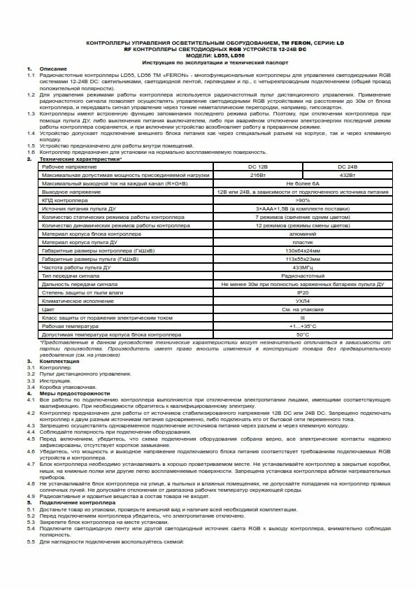 Отзывы на Контроллер для светодиодной ленты с П/У белый, 18А 12-24V, LD56, FERON 21558 (1 шт.)