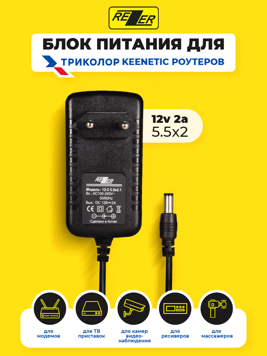 10 цен на Блок питания универсальный 12В 2A REZER для Ростелеком, Триколор , разъем 5.5х2.1