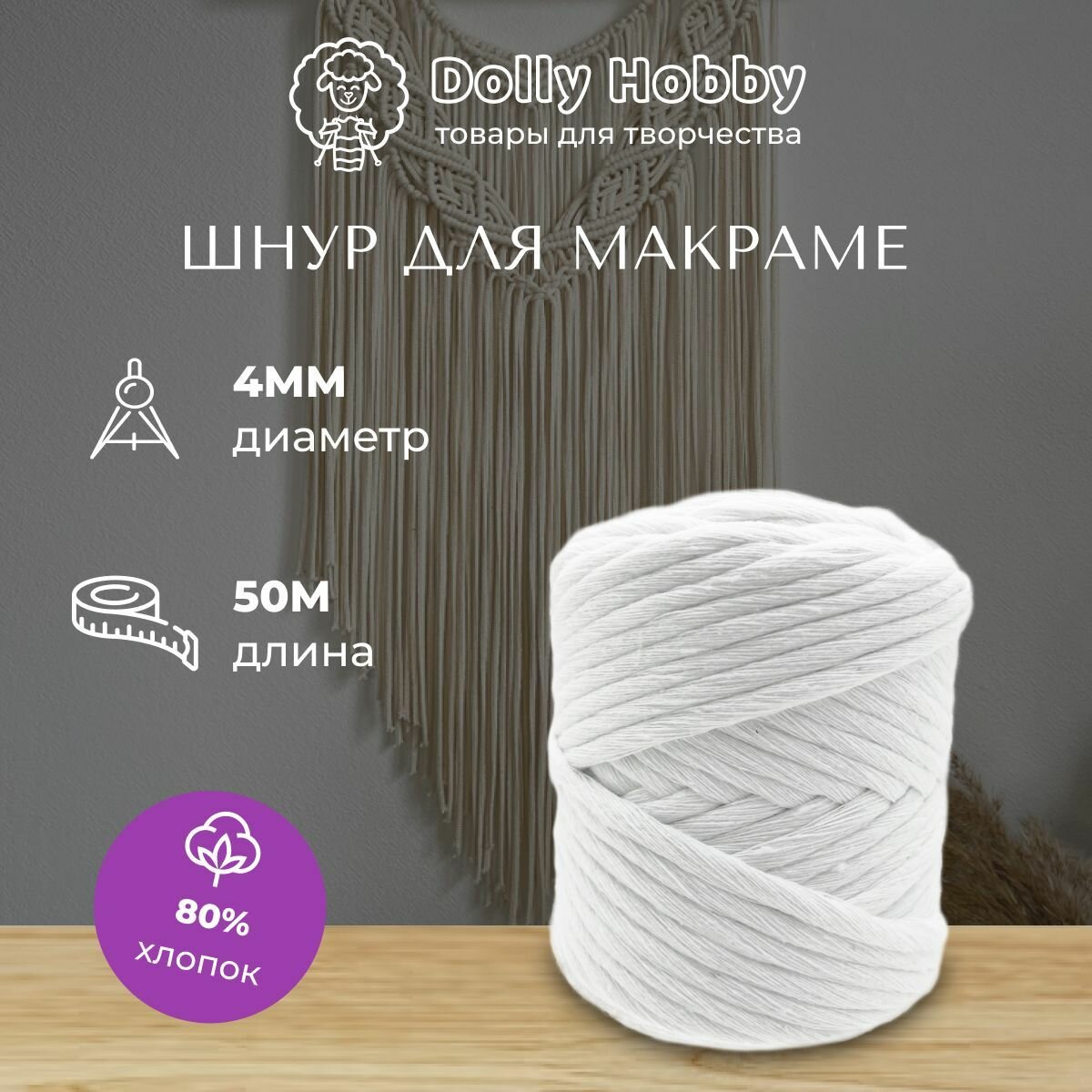 Шнур для макраме и рукоделия Dolly 80% хлопок 50 м/ 4 мм/ белоснежный информация: