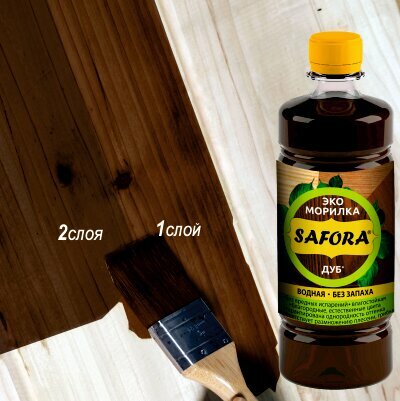 Морилка водная для дерева SAFORA, цвет дуб, 500мл быстросохнущая, без запаха информация:
