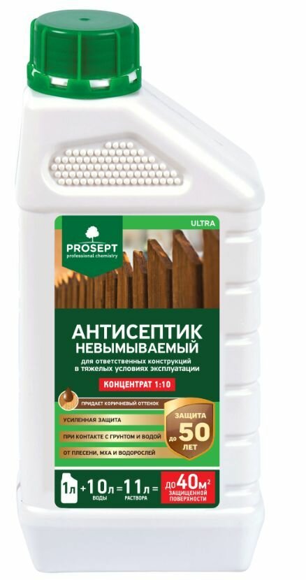 Отзывы на Антисептик невымываемый PROSEPT ULTRA коричневый концентрат 1:10 1 литр + перчатки для защиты рук