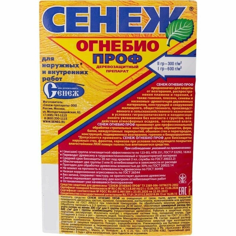 Сенеж ОгнеБио Проф 6 кг строительный антисептик информация: