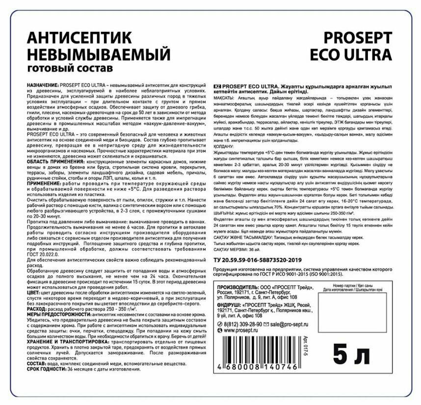 PROSEPT Антисептик невымываемый для ответственных конструкций, Prosept Eco Ultra, готовый раствор, 5 л