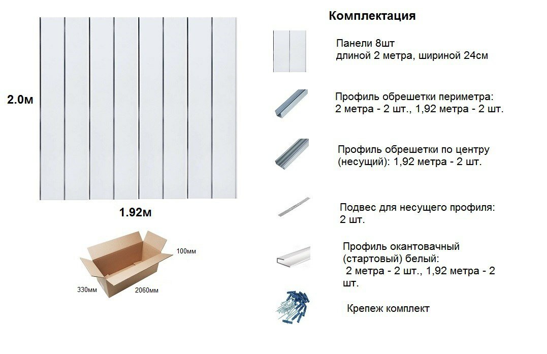 Размер 2400 мм. x 2000 м. - Алюминиевый реечный потолок металлик матовый в комплекте