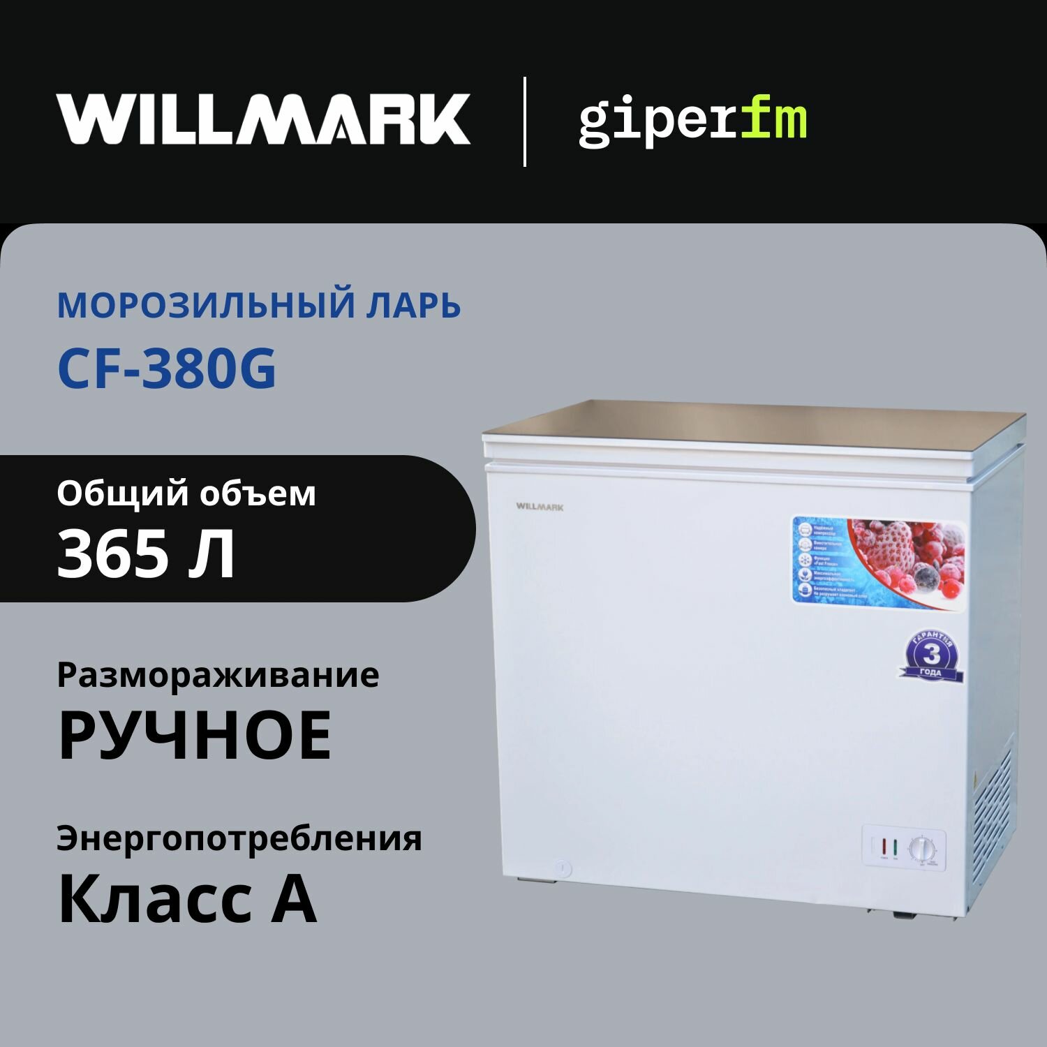 Отзывы на Морозильный ларь Willmark CF-380G, класс энергоэффективности A, 365 л, суперзаморозка, стеклянная крышка, белый