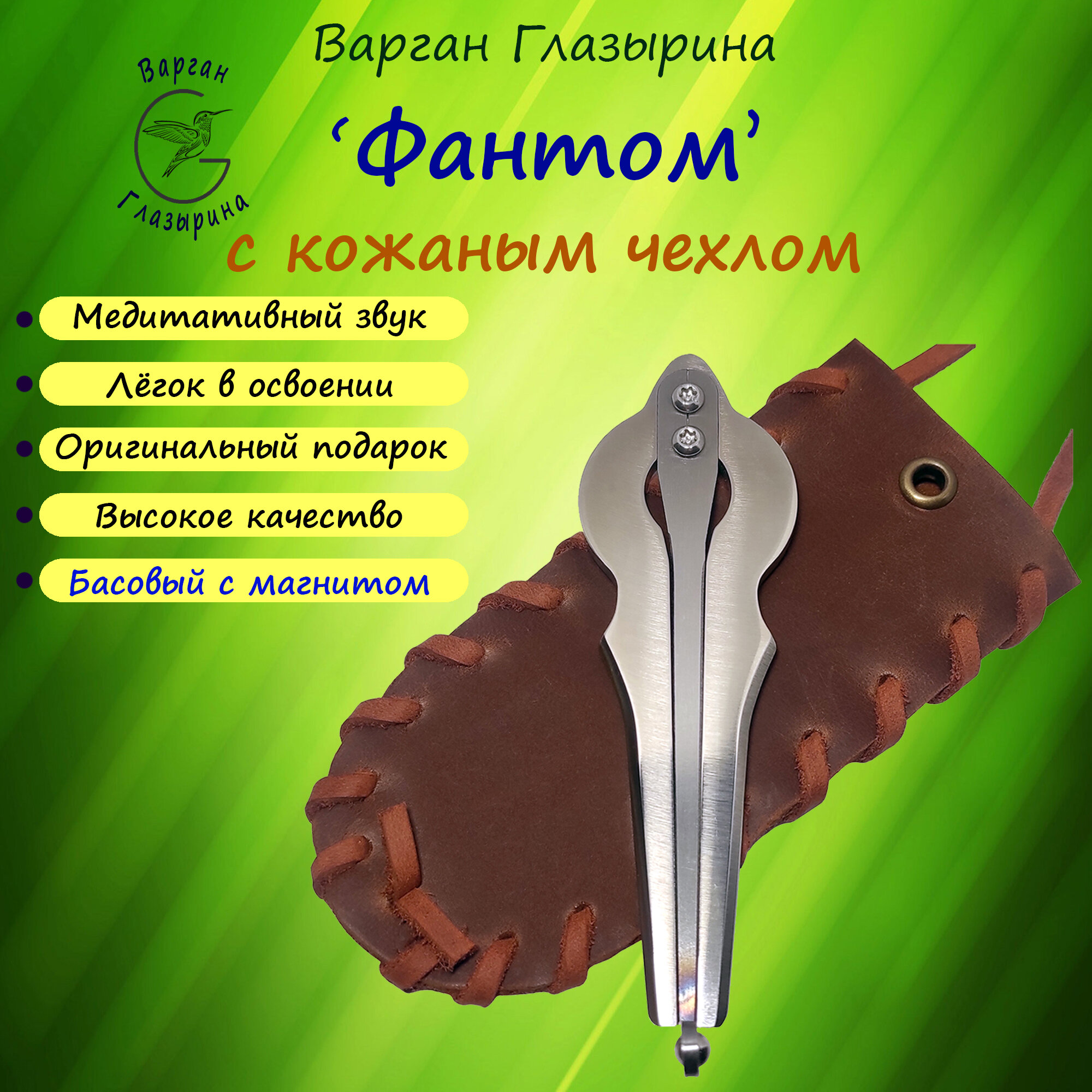 Варган Глазырина "Фантом" с кожаным чехлом - музыкальный инструмент, великолепный подарок, с магнитом информация: