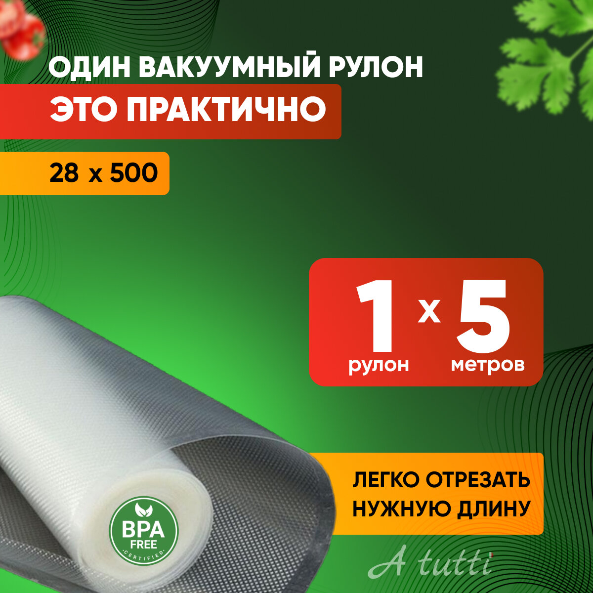 Рулон для вакууматора 28см *5 метров. Премиальные рифленые пакеты для вакуумной упаковки A tutti информация: