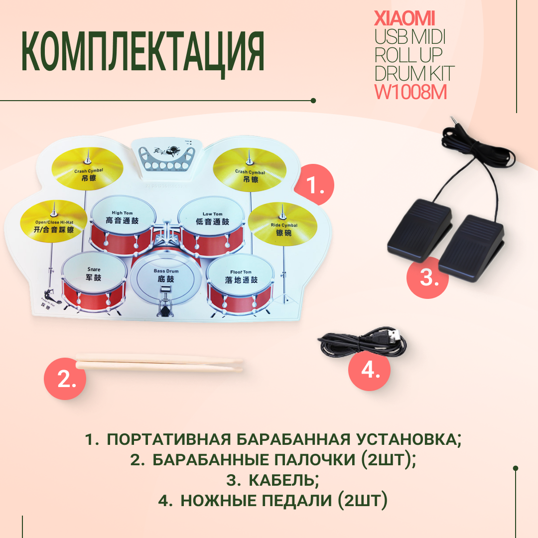 Портативная барабанная установка Usb Midi Roll Up Drum Kit W1008M информация: