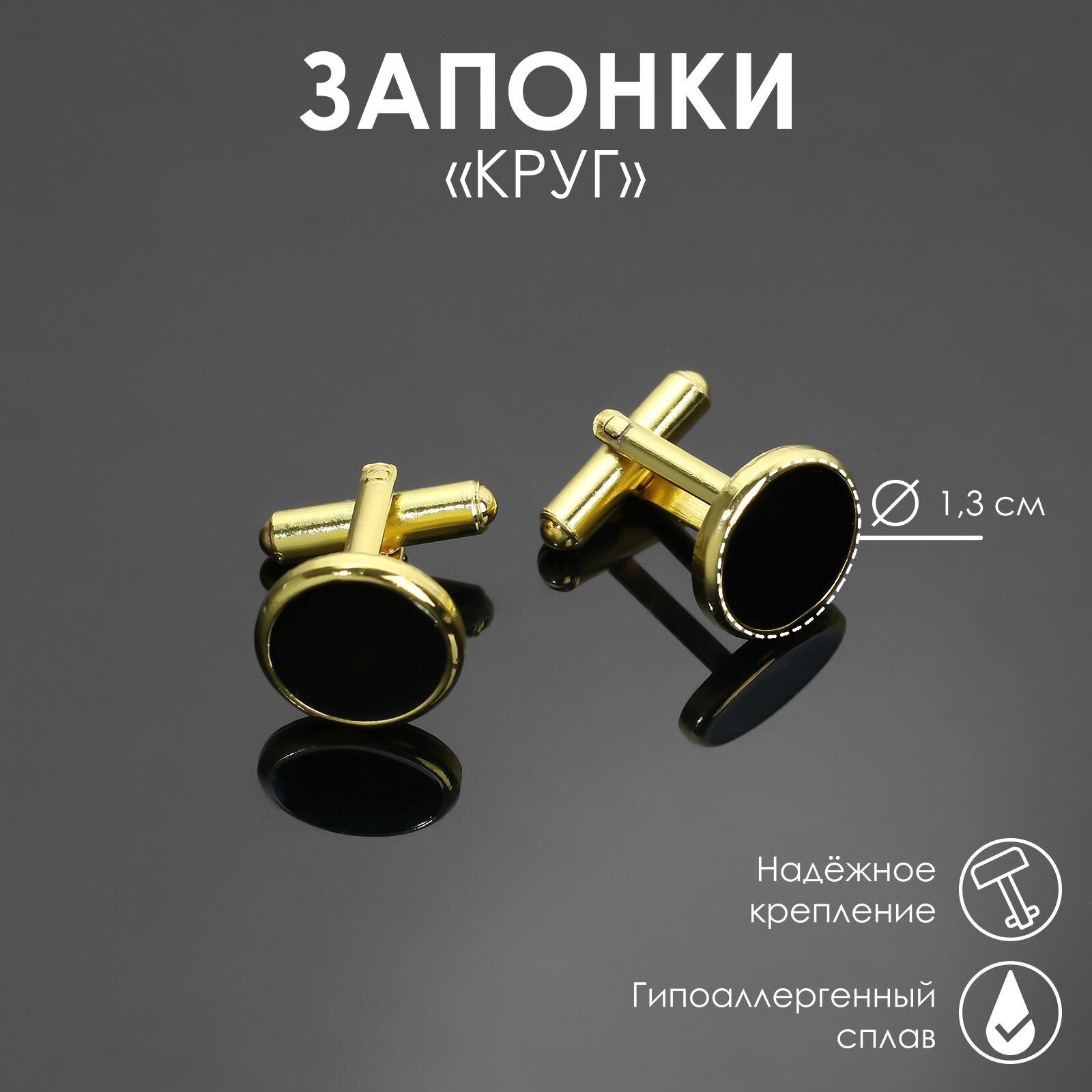 Запонки металлические "Круг" с эмалью, цвет чёрный в золоте информация: