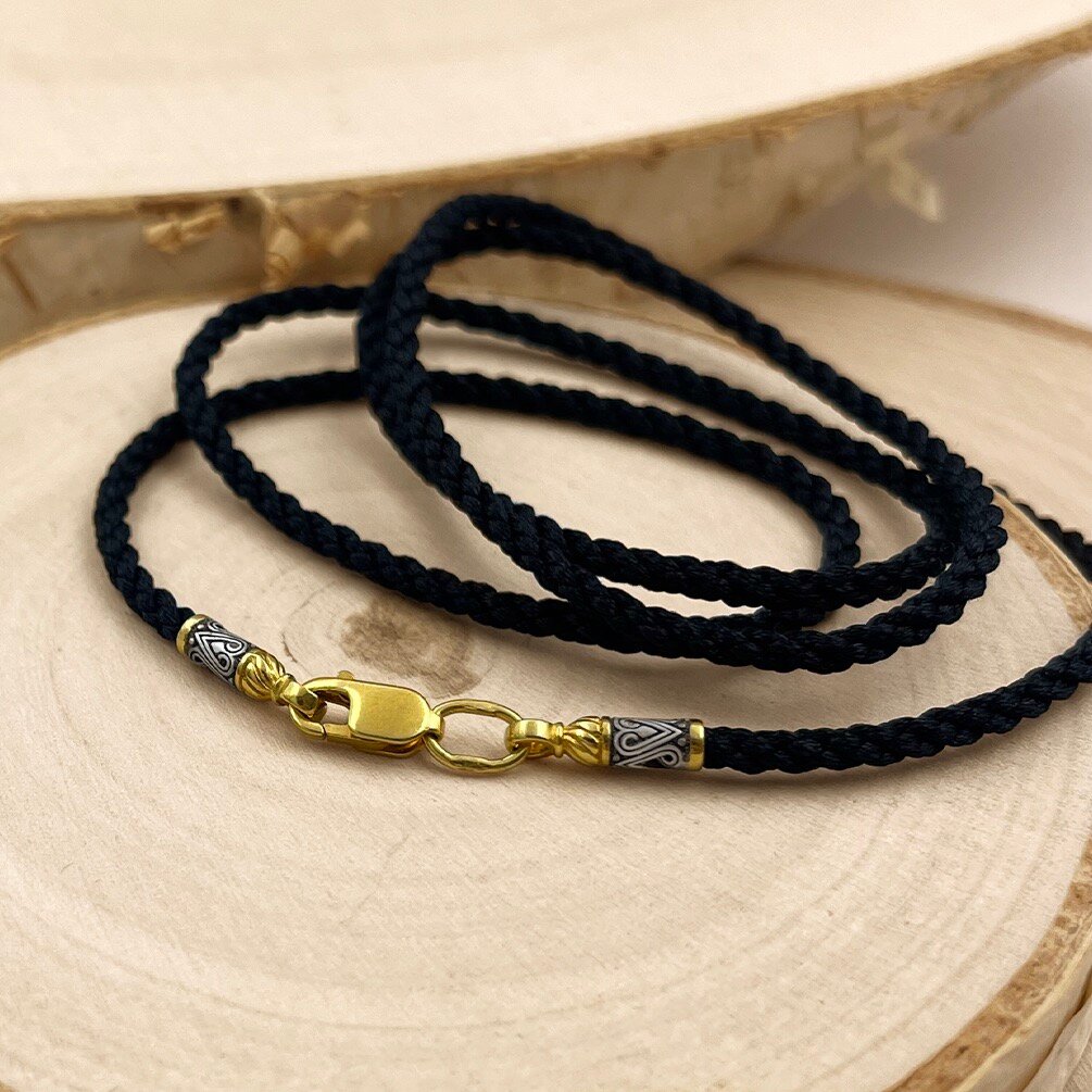Шёлковый Гайтан 2 мм 45 см Серебряный замок с Золочением