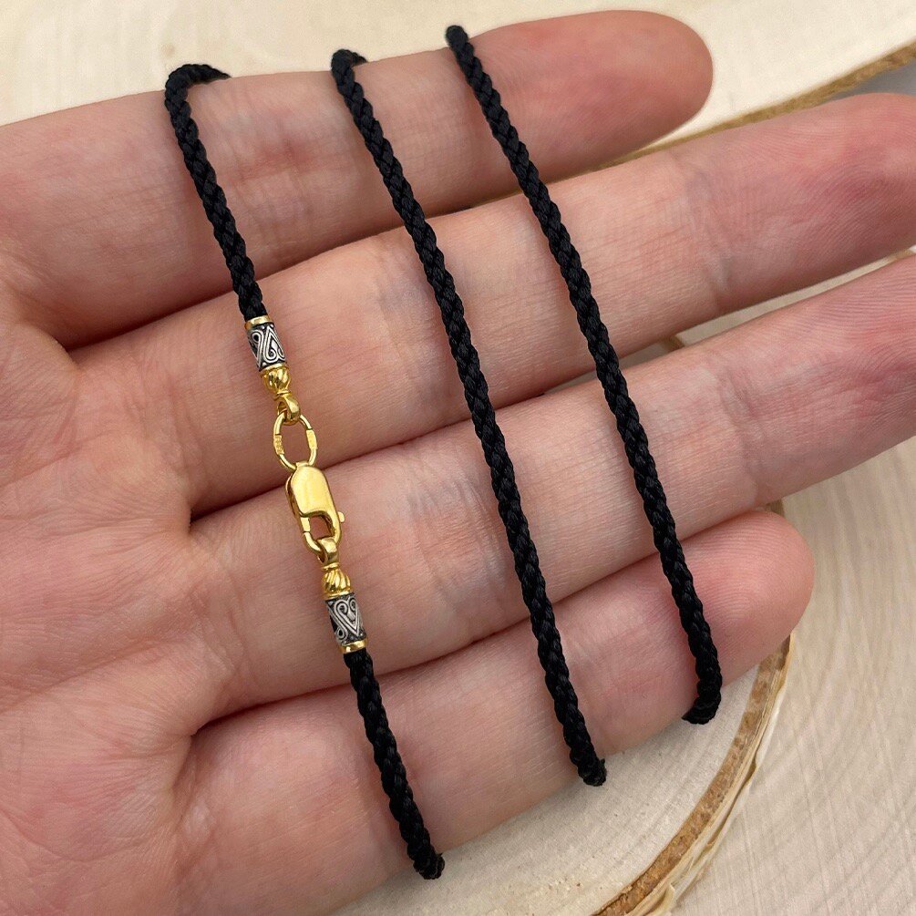 Шёлковый Гайтан 2 мм 55 см Серебряный замок с Золочением