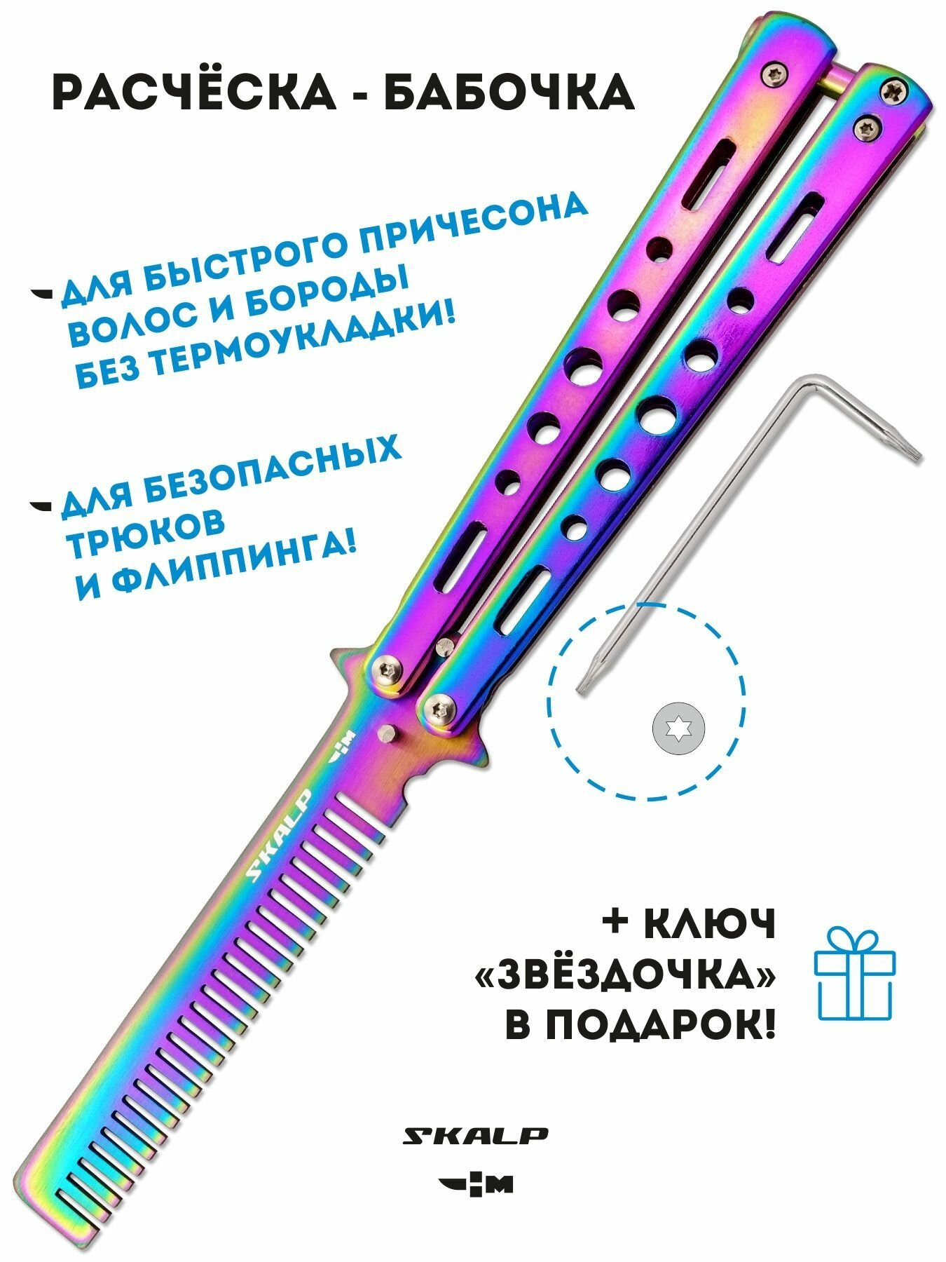 | В комплекте | Расческа нож - бабочка, ключик для болтиков, упаковка |