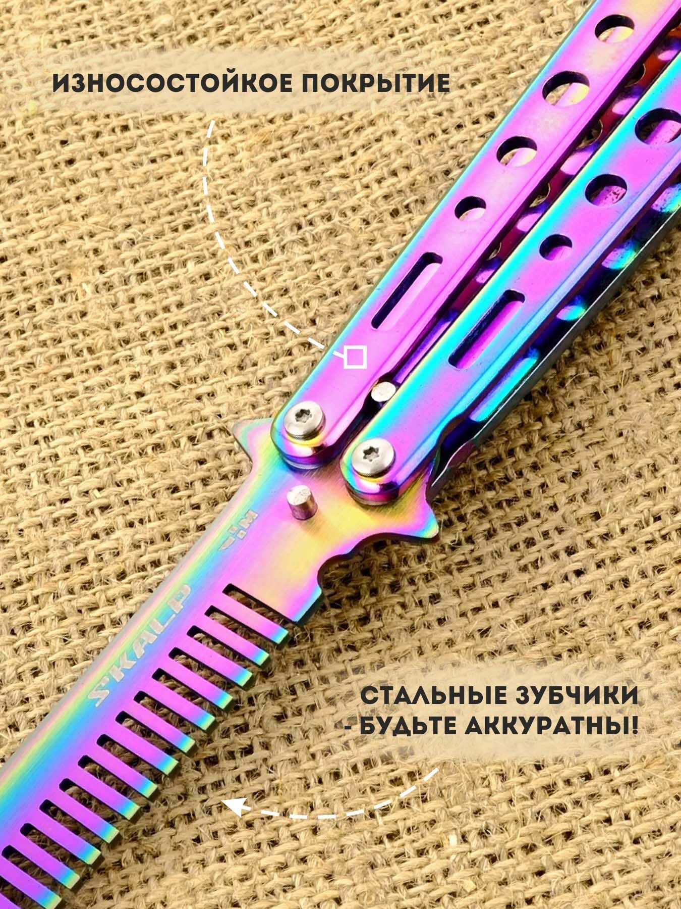 Расческа для бороды и волос в виде ножа бабочки для выполнения трюков Ножемир SKALP мраморный градиент BRA-24 506 ₽