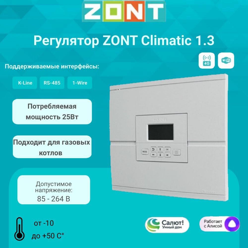 10 цен на Регулятор отопления ZONT Climatic 1.3 (для каскада из 2-х котлов, ГВС и 3 смесительных контура)