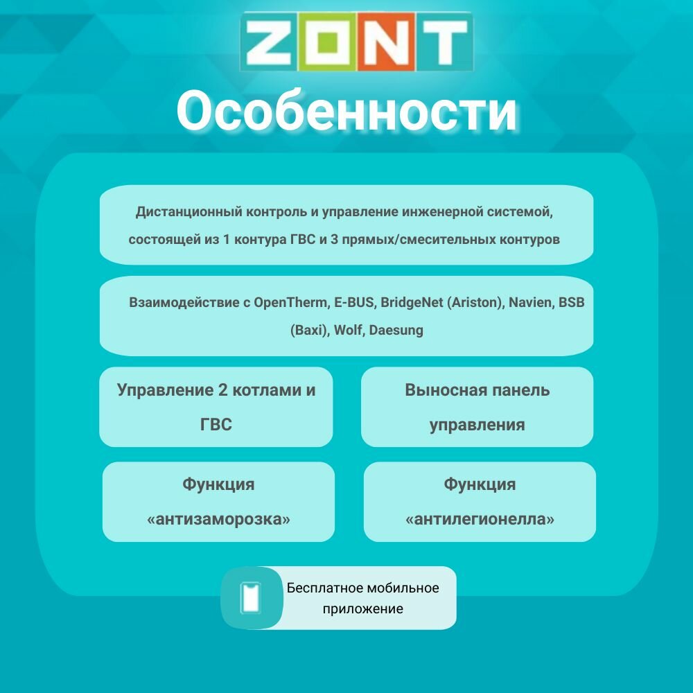 Регулятор отопления ZONT Climatic 1.3 (для каскада из 2-х котлов, ГВС и 3 смесительных контура) информация: