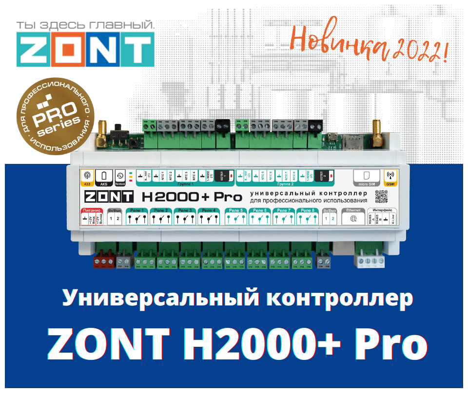 Универсальный контроллер ZONT H2000+ PRO V.02 информация:
