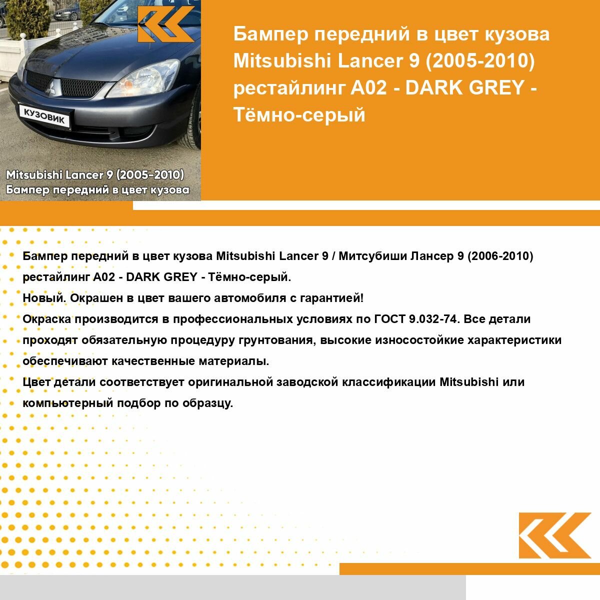Отзывы на Бампер передний в цвет кузова для Митсубиси Лансер 9 Mitsubishi Lancer 9 (2005-2010) рестайлинг A02 - DARK GREY - Темно-серый