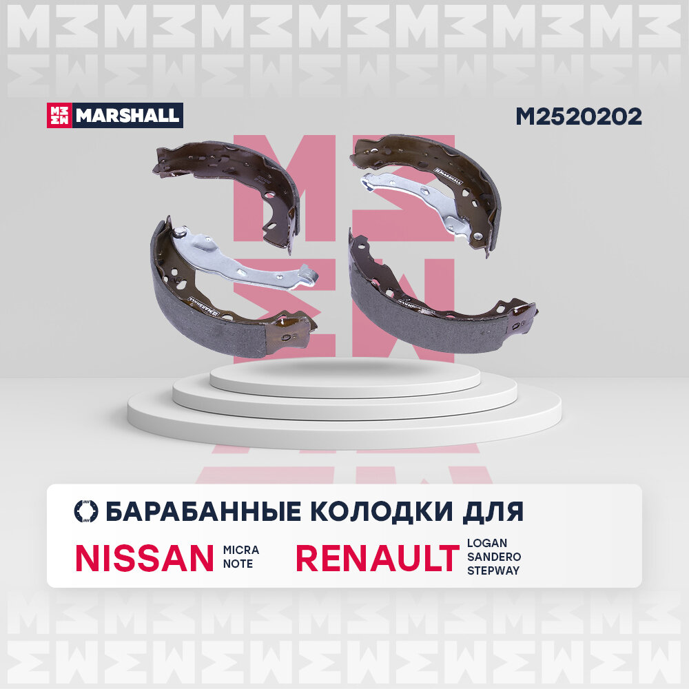 Тормозные колодки барабанные задние MARSHALL M2520202 для Nissan Micra IV, Nissan Note, Renault Logan I, Renault Sandero I // кросс-номер TRW GS8455 1 499 ₽