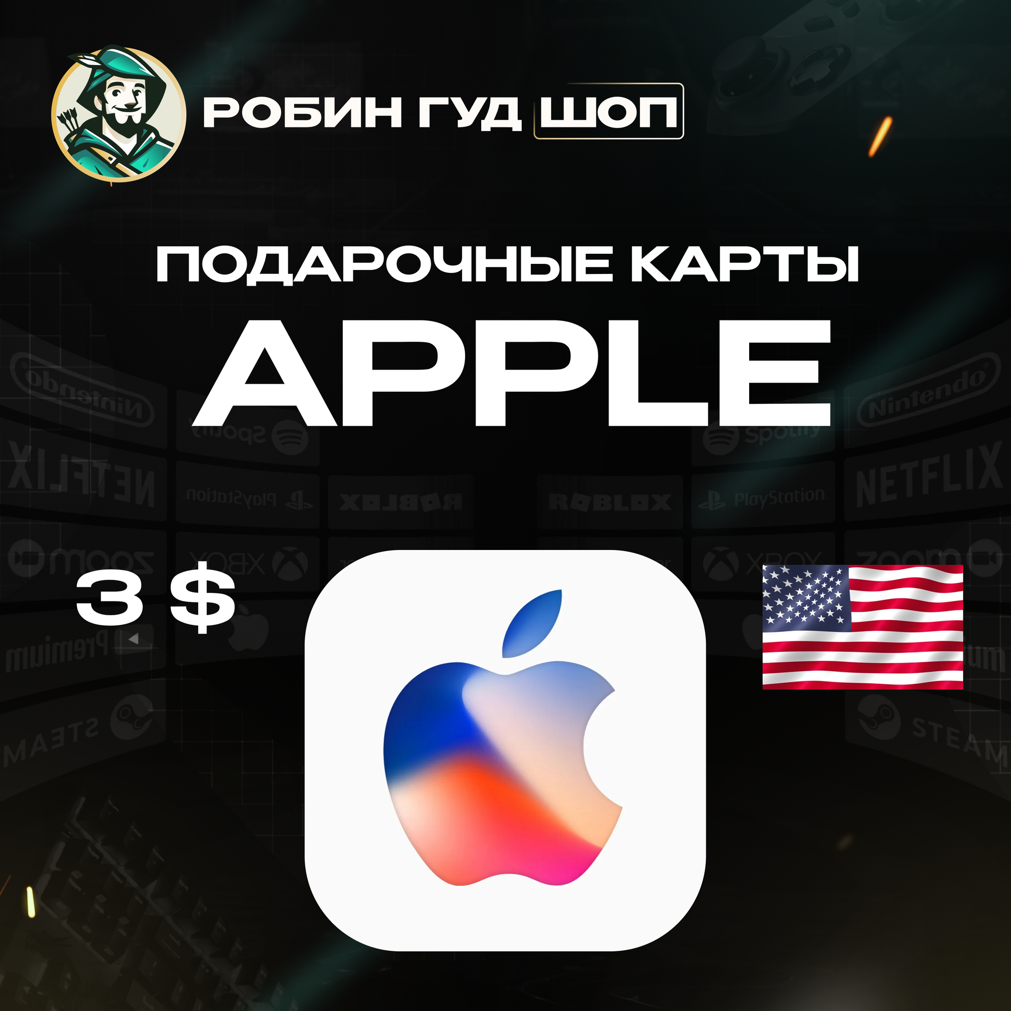 Подарочная карта на 3 доллара Apple & iTunes & AppStore для Американских профилей информация: