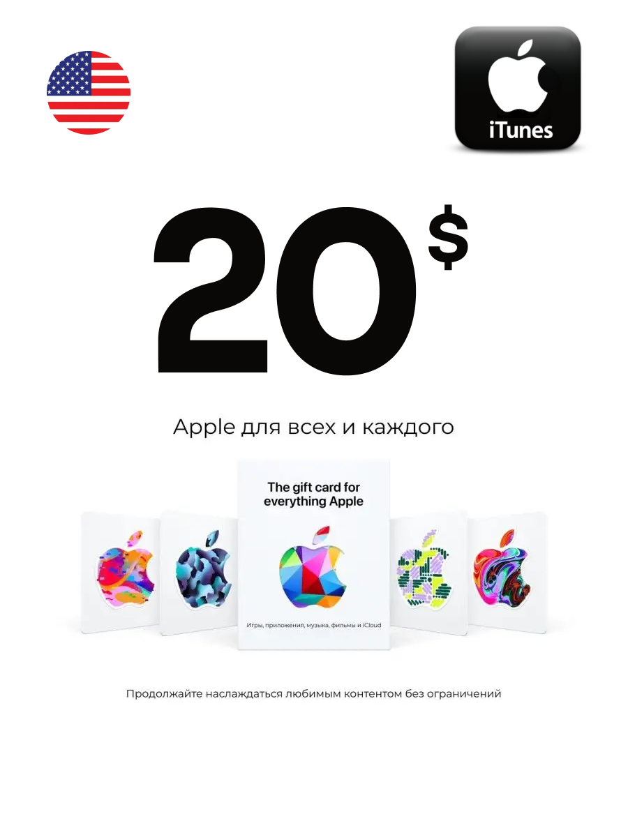 Подарочная карта на 20 долларов Apple & iTunes & AppStore для Американских профилей информация: