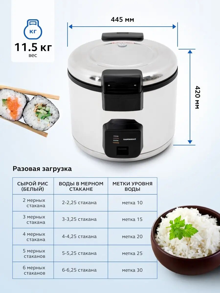 Отзывы на Рисоварка электрическая GASTRORAG DKR-180B, со съемной чашей объемом 18 л, пароварка для риса, техника для профессиональной кухни