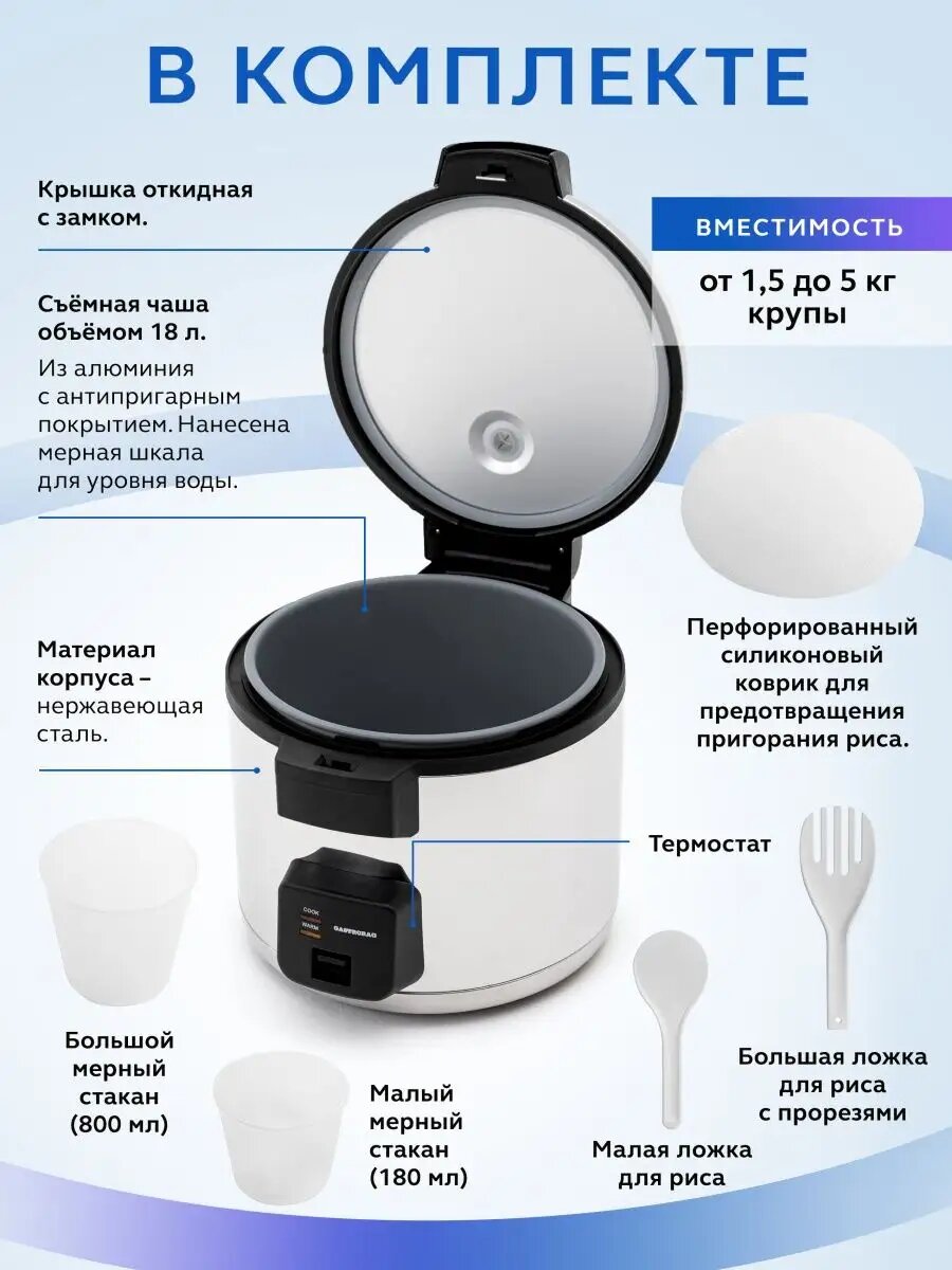 Рисоварка электрическая GASTRORAG DKR-180B, со съемной чашей объемом 18 л, пароварка для риса, техника для профессиональной кухни информация: