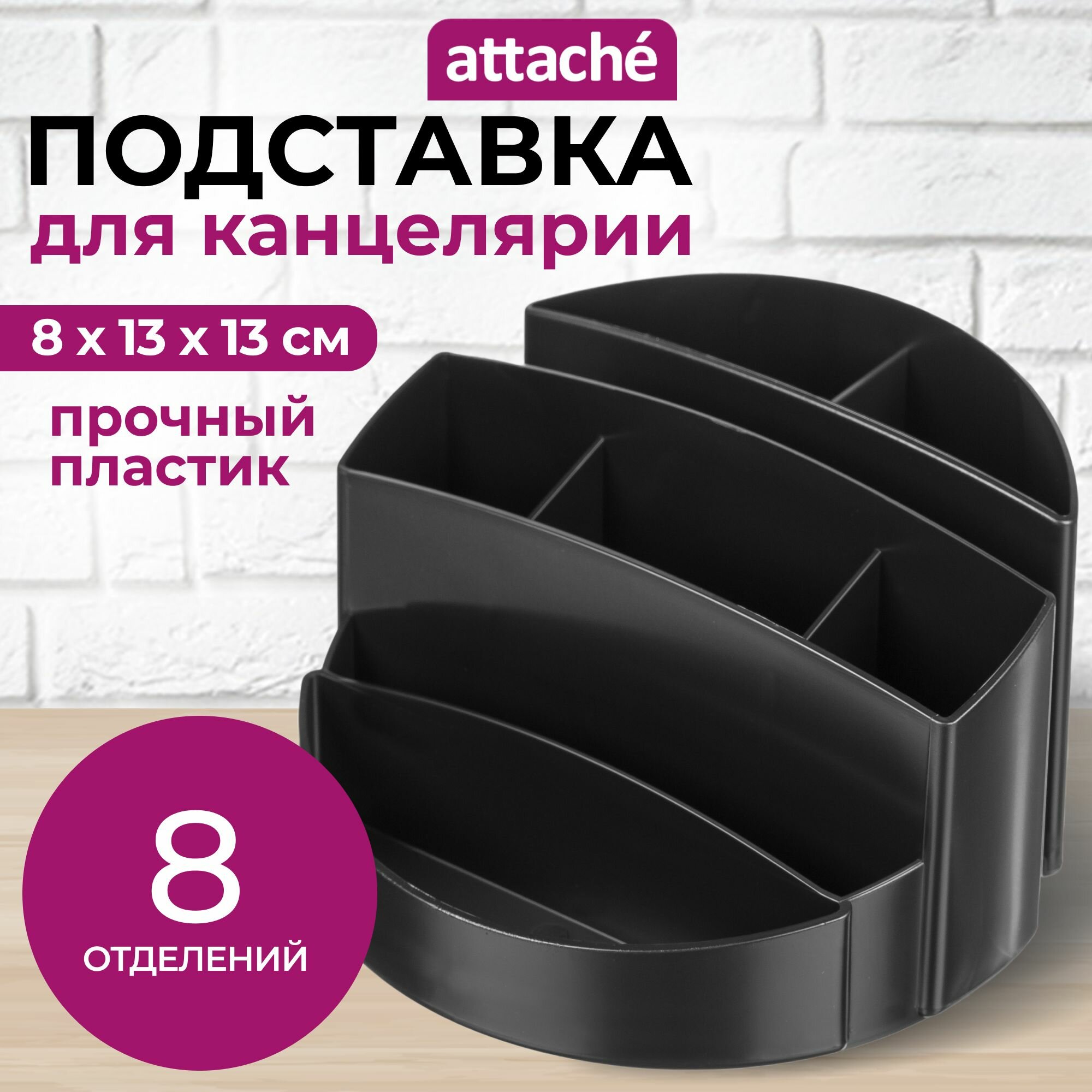 Подставка органайзер для канцелярских принадлежностей Attache, черная, 80x130x130, 8 отделений информация: