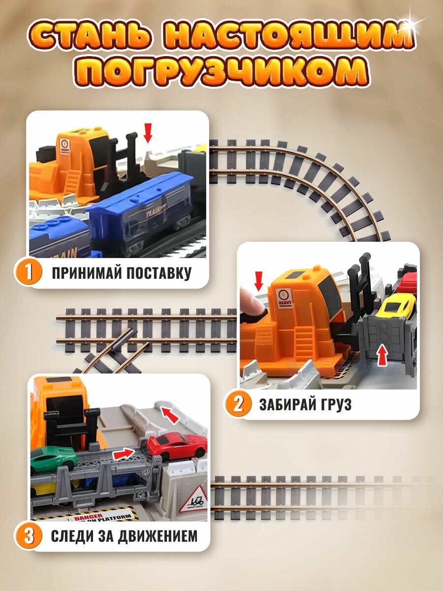 Игрушка - железная дорога и поезд с вагонами и машинками информация: