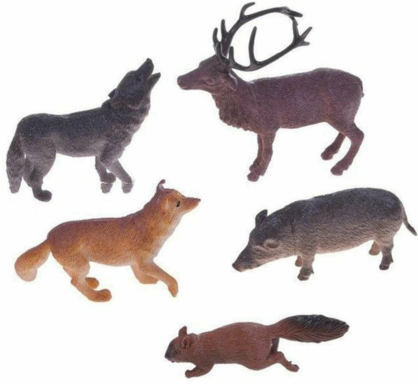 Дикие животные фигурки 1TOY "В мире животных", игровой набор: лось, кабан, лиса, волк, белочка, 5 шт., 12 см информация: