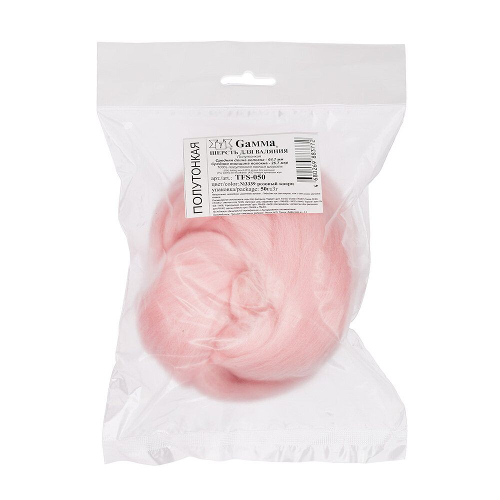 Шерсть для валяния "Gamma" TFS-050 100% полутонкая шерсть 50 г №3339 розовый кварц информация: