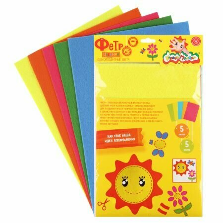 Фетр цветной Каляка-Маляка флуоресцентный, А4, 5 листов, 5 цветов, в пакете с европодвесом информация: