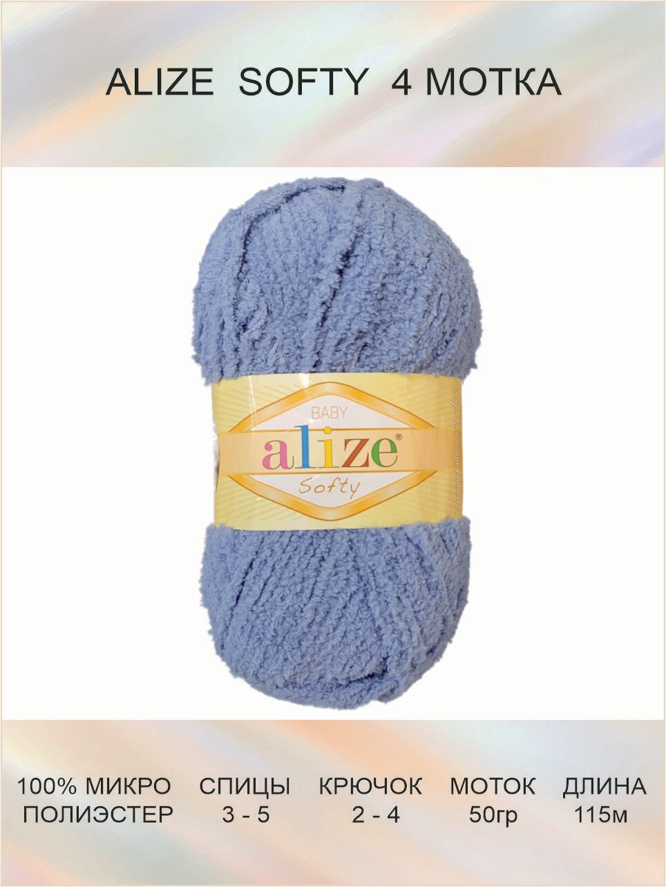10 цен на Пряжа для вязания ALIZE SOFTY Ализе Софти: 374 (голубой) / 4 шт / 115 м / 50 г / 100% микрополиэстер