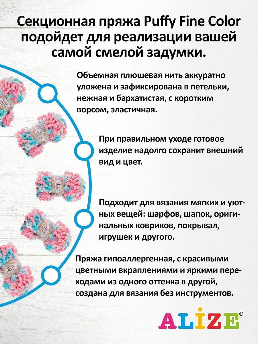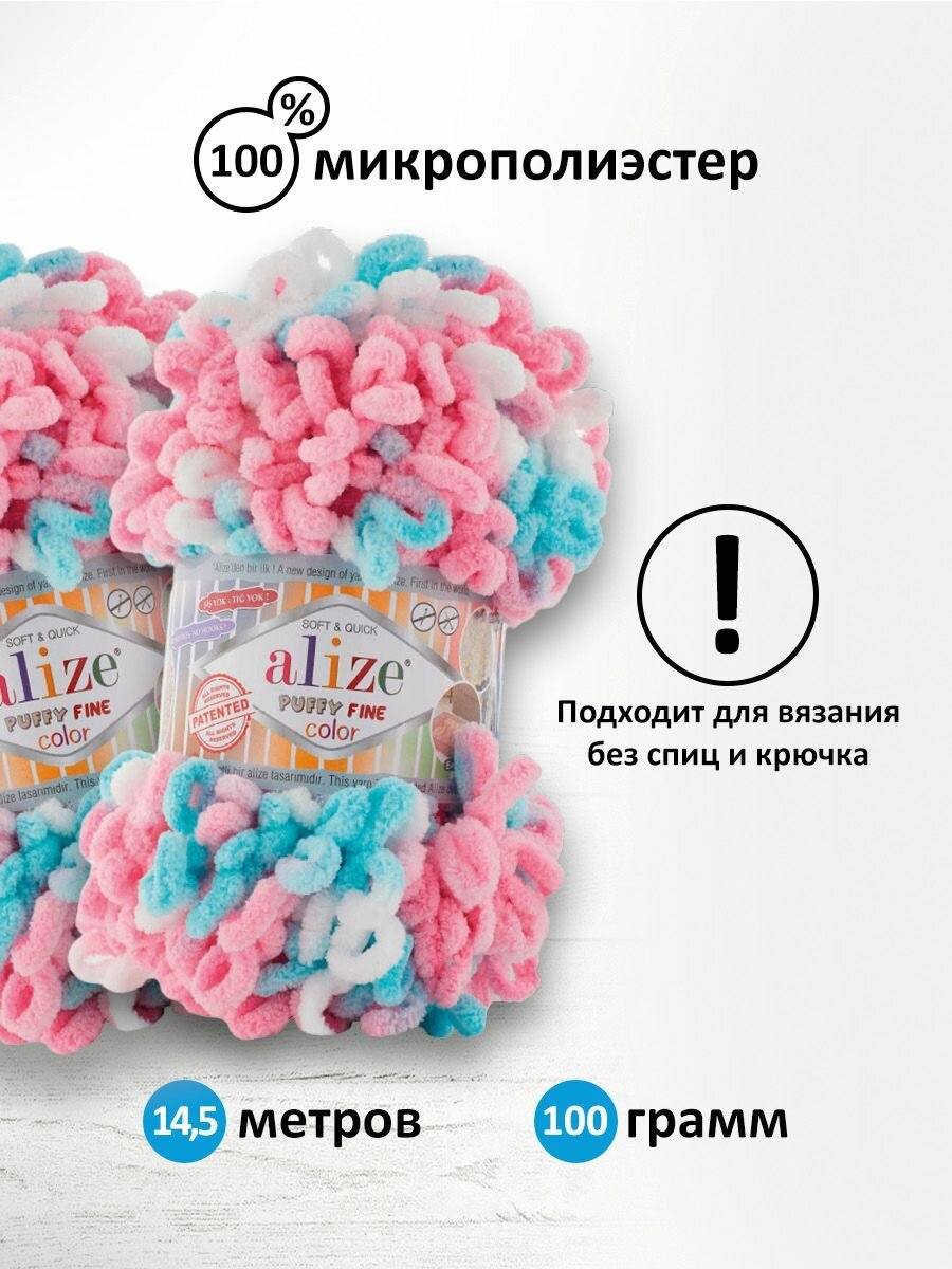 Пряжа для вязания руками с готовыми петлями ALIZE 'Puffy Fine Color' 100г, 14,5м (6377 секционный), 5 мотков информация: