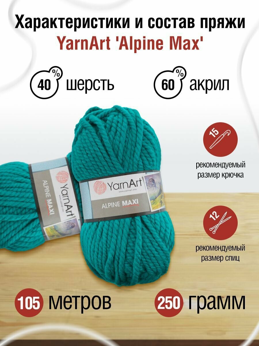 Пряжа для вязания YarnArt 'Alpine Maxi', 250г, 105м (40% шерсть, 60% акрил) (675 изумрудный), 2 мотка информация: