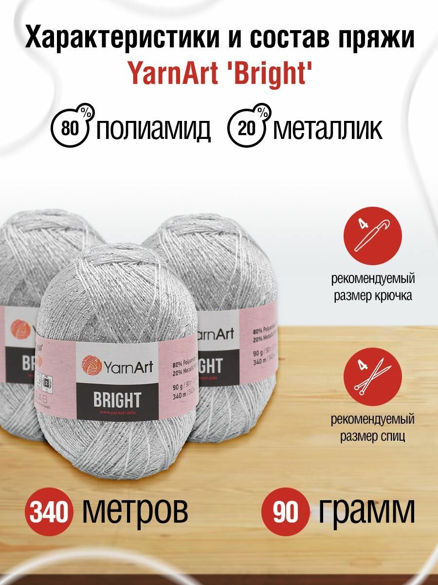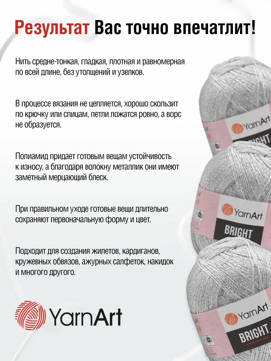 Пряжа для вязания YarnArt 'Bright', 90г, 340м (80% полиамид, 20% металлик) (128 серебро), 6 мотков информация: