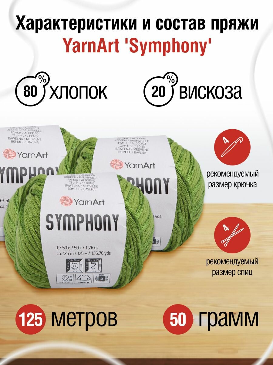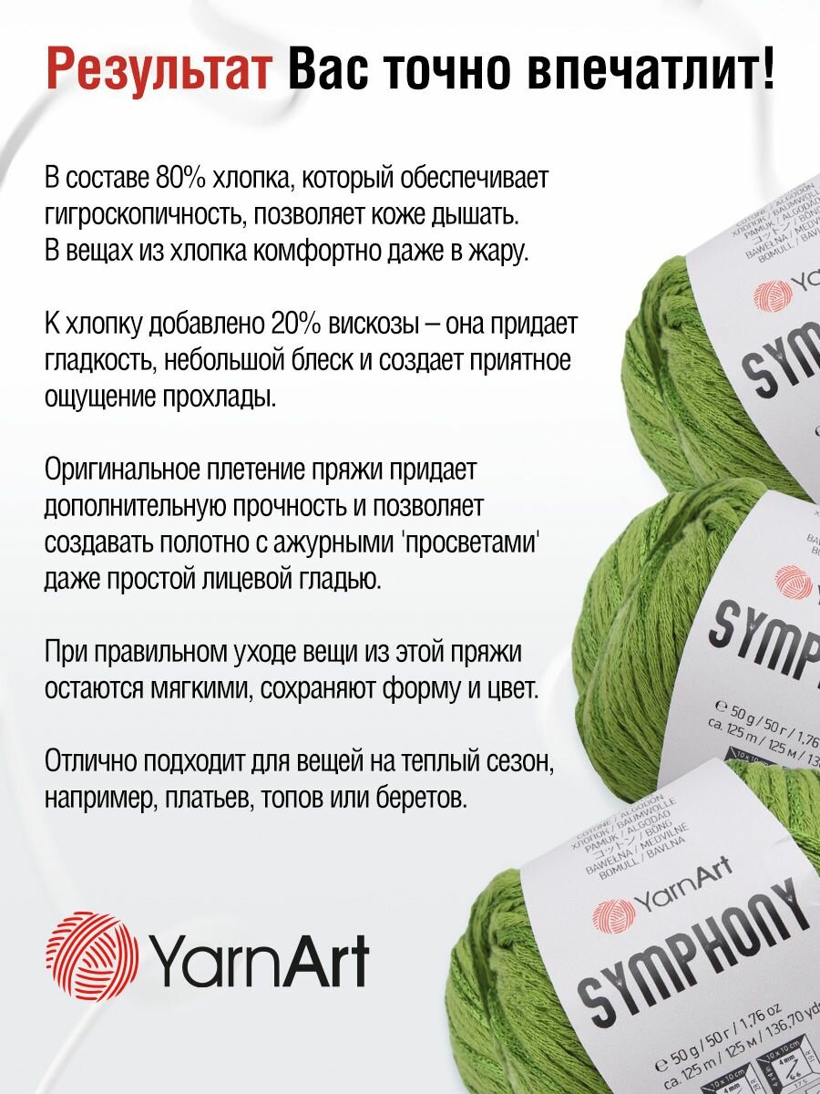 Пряжа для вязания YarnArt 'Symphony' 50гр 125м (80% хлопок, 20% вискоза) (2112 зеленая трава), 10 мотков информация: