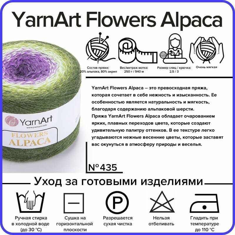 Пряжа YarnArt Flowers Alpaca (ЯрнАрт Фловерс Альпака) 1 моток цвет 435 Темно-зелёный, Зелёный, Белый, Фиолетовый, 20% альпака, 80% акрил, 250г, 940м информация: