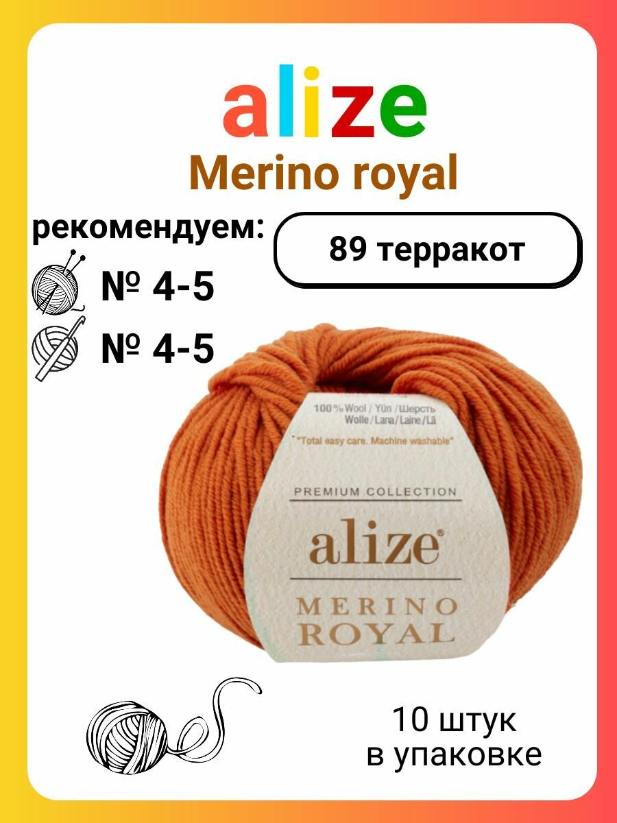 10 цен на Мериносовая пряжа для вязания Alize Merino Royal, цвет 89 терракот, моток 50г, 100м, 10 мотков/упак