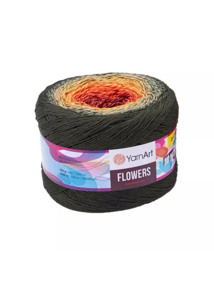 Пряжа YarnArt Flowers болотный-хаки-оранжевый-терракот (302), 55%хлопок/45%акрил, 1000м, 250г, 1шт