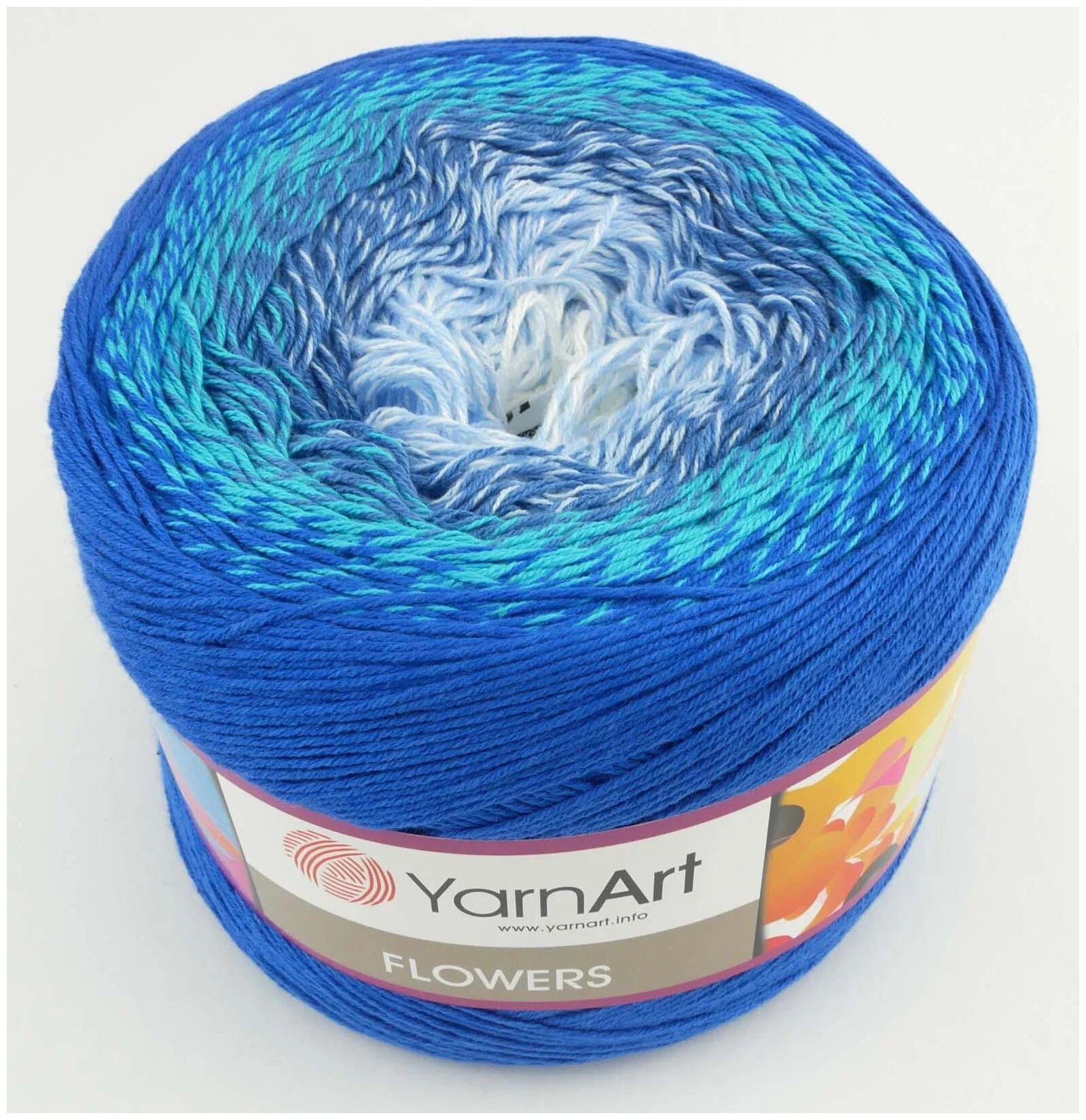 Пряжа YarnArt Flowers василек-бирюза-джинс-голубой-белый (299), 55%хлопок/45%акрил, 1000м, 250г, 1шт