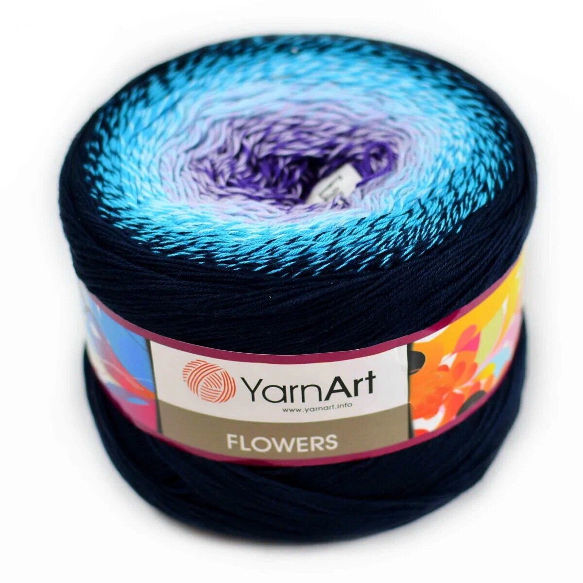 Пряжа YarnArt Flowers темно синий-бирюза-сирень (254), 55%хлопок/45%акрил, 1000м, 250г, 1шт