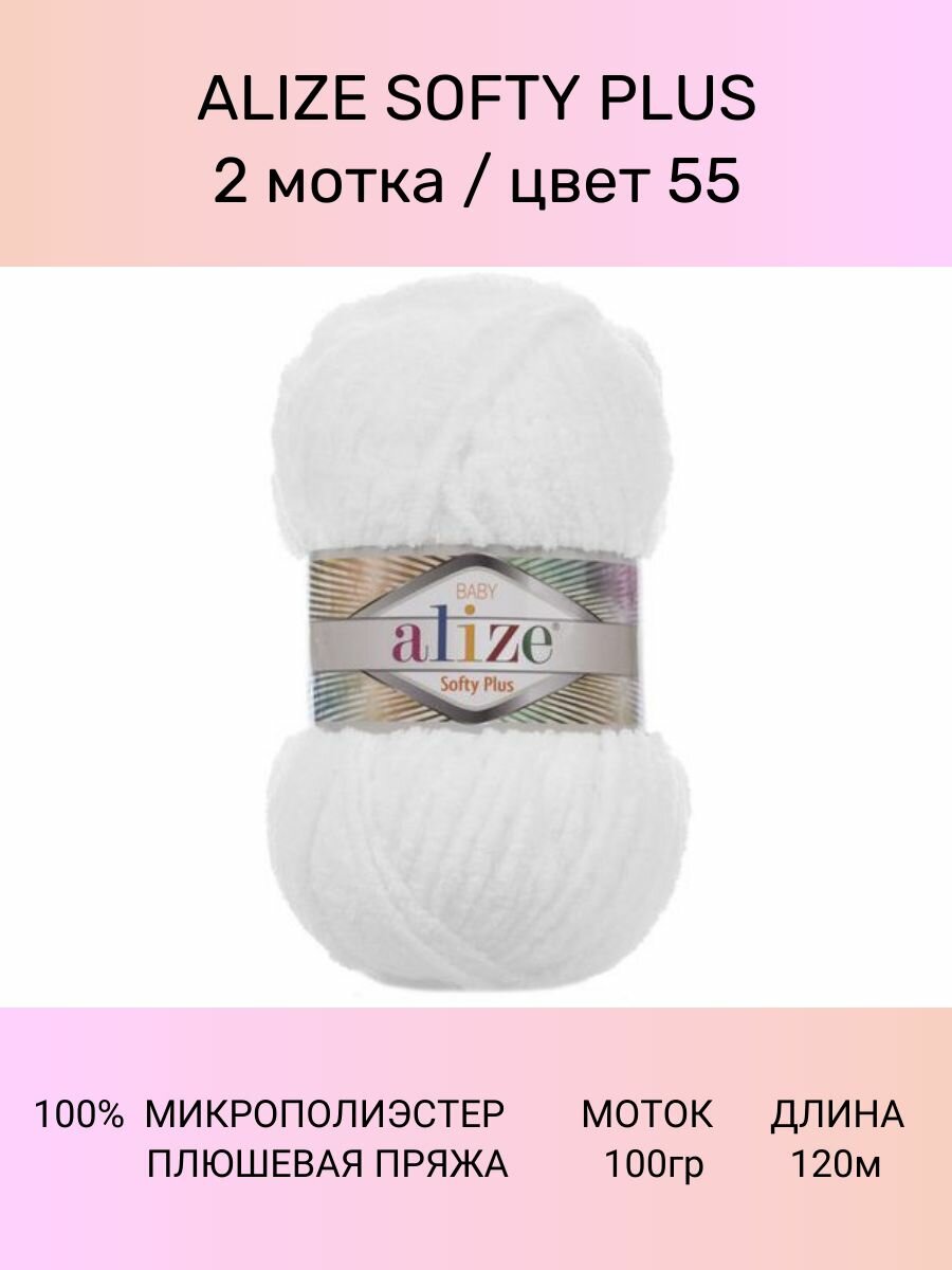 Пряжа Alize Softy plus белый (55), 100%микрополиэстер, 120м, 100г, 2шт информация: